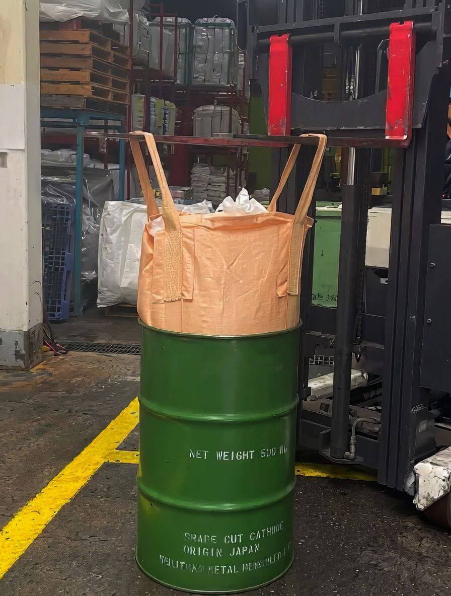 吊上げ不能袋の輸送に フレコンを丸ごと入れて運べる